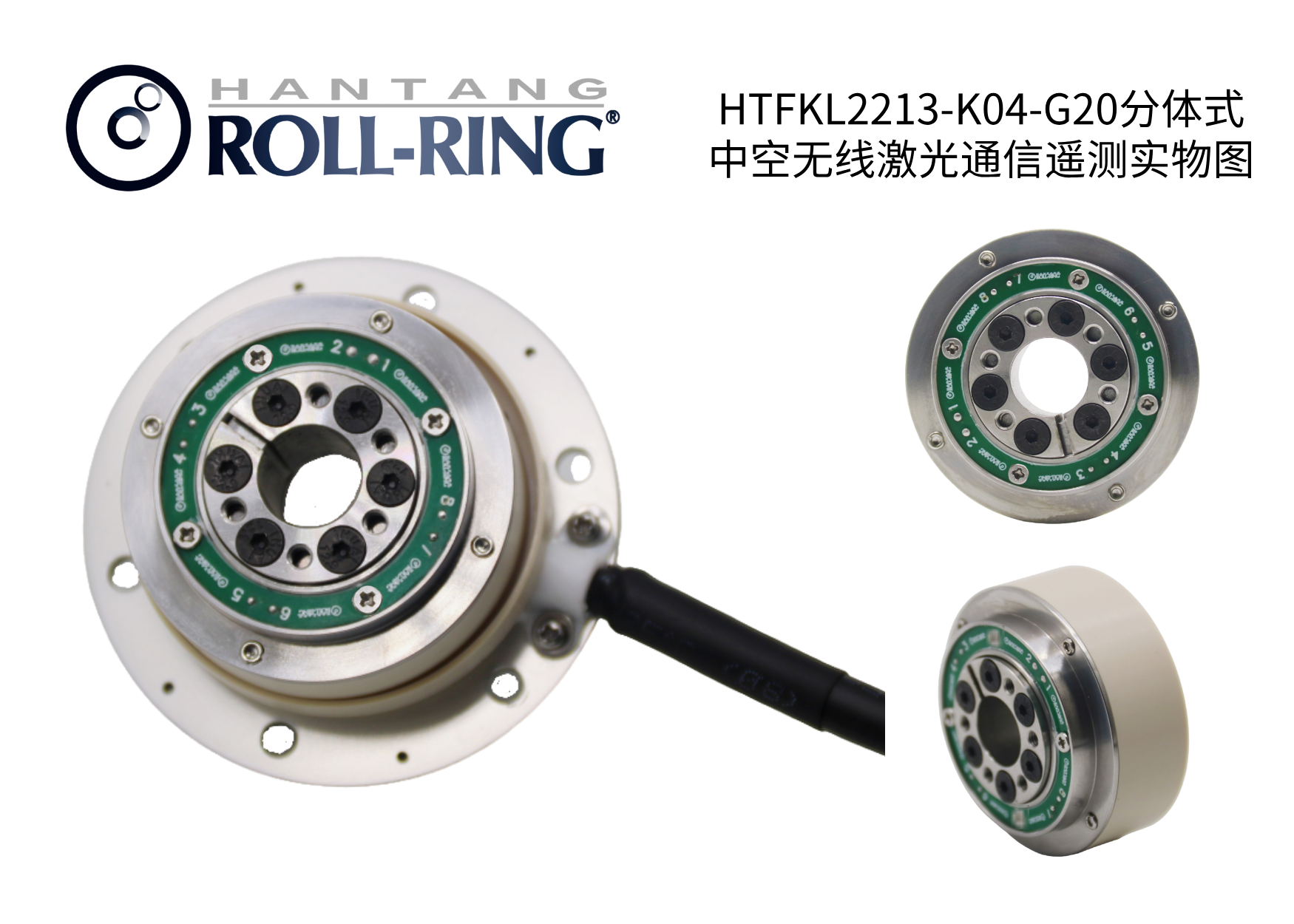 HTFKL2213-K04-G20分体式无线激光通信遥测汉唐团队综合新能源汽车驱动电机研制过程中,需要对驱动电机转子进行长时间动态监测的需求上,在总结汉唐原有的“无线激光通信遥测技术”的经验基础上,自主设计了一款“分体式中空抱轴无线激光通信遥测系统”,其原理是从被测转子采集到的传感器信号通过光为载体、空气为介质发送给定子的光接收,将光信号调制与解调成电信号通过连接器方式输出,实现高速转子非接触信号传输。
